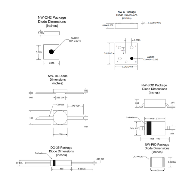 NoiseWave’s noise diodes offer a symmetrical white Gaussian noise voltage distribution while maintaining a flat power spectral density versus frequency response. Applications for these diodes include built in test equipment, dithering for increased dynamic range of A/D converters, and as an economical source of broadband power. Diodes are available in a variety of packages including an industry standard SOD-323 package, which allows it to be economically produced. |